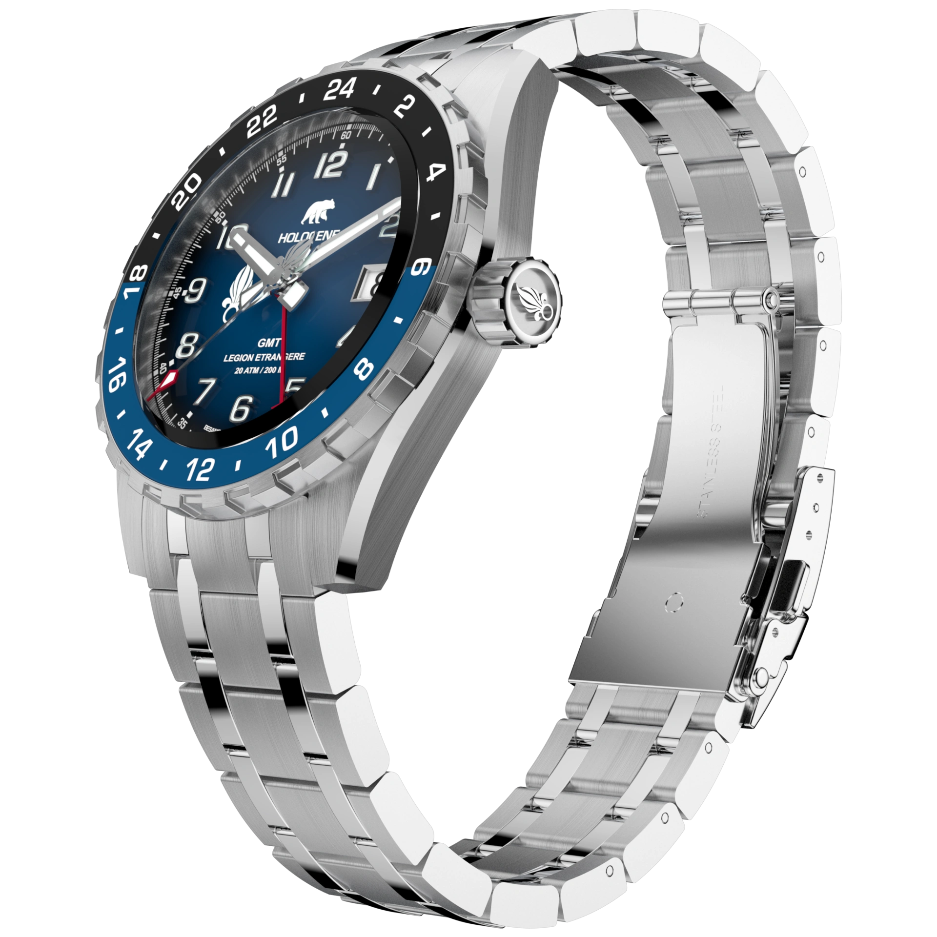 Pensée comme un outil de temps fiable, lisible et robuste, cette montre automatique GMT accompagne celles et ceux qui vivent entre deux repères : la mission et la maison. Elle s’appuie sur une architecture éprouvée, retravaillée et adaptée aux exigences d’un usage opérationnel.